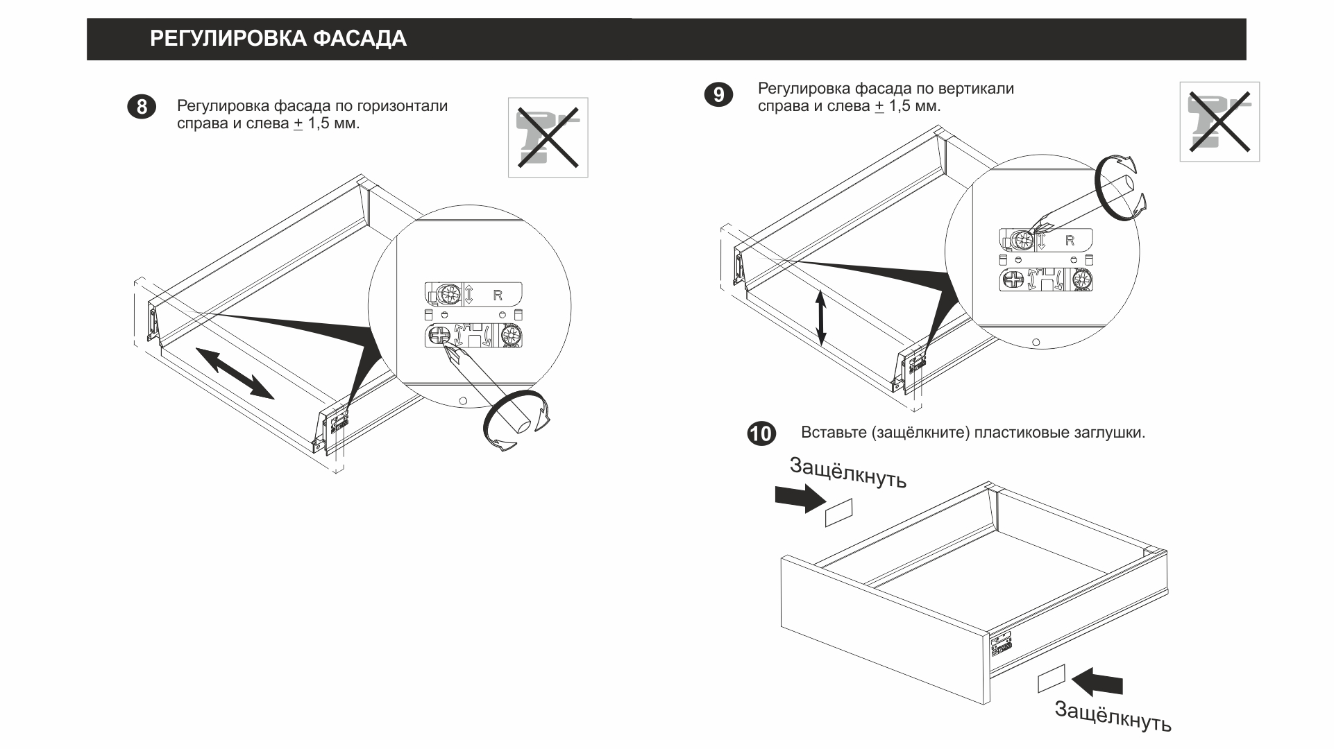 • Упоры-защелки фасадов, демпфер