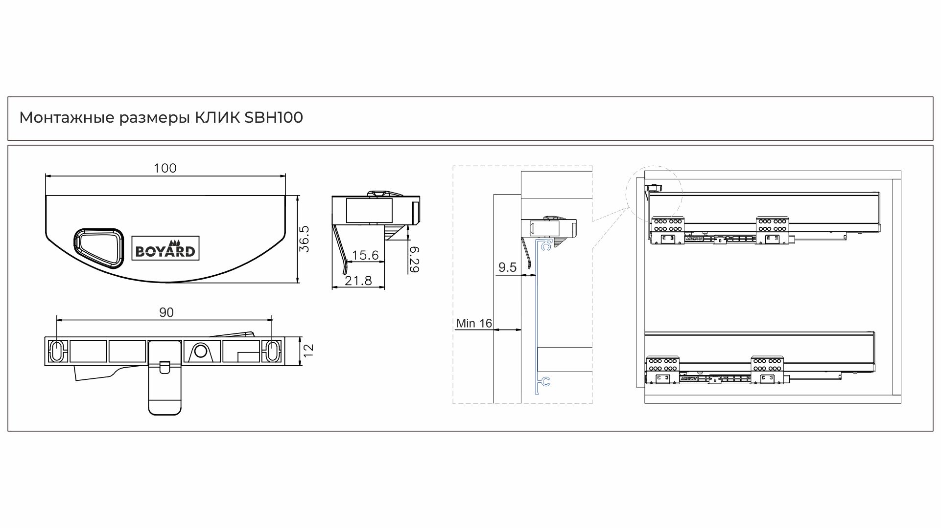 —Держатель внутреннего ящика СТАРТ для любых боковин КЛИК SBH100/GRPH